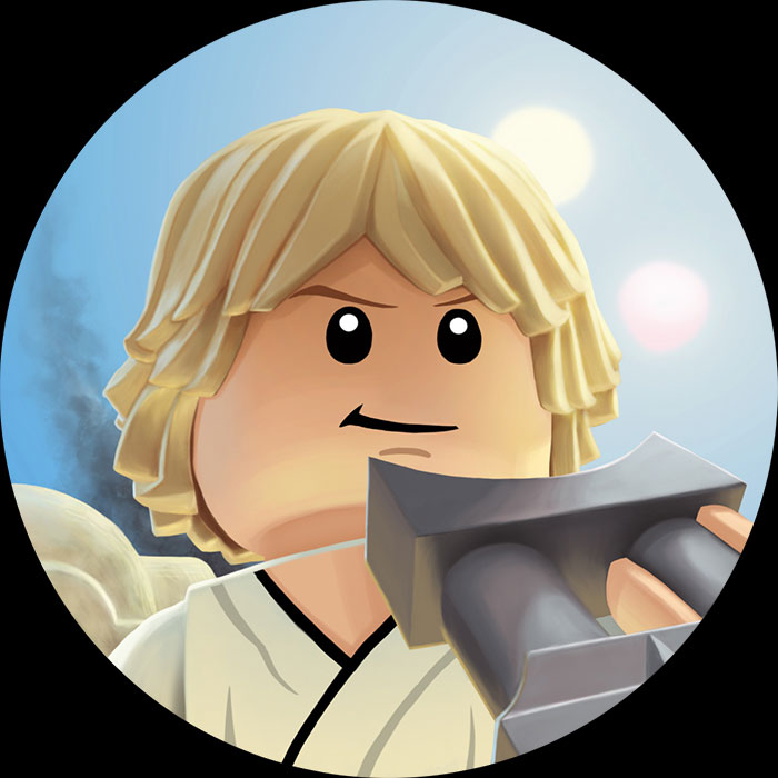 Part of our convention strategy every year is to hand out special-edition minifigures, so we had the production resources set aside for a custom Luke Skywalker, Darth Maul, and Boba Fett, but no resources for custom set or package assemblies. We had to get creative and do these entirely in-house, limited to whatever elements we already had available in the Connecticut model shop, picking and packing parts manually and hand-applying printed stickers to thousands of round collector tins.